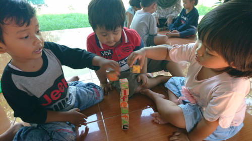 Koordinasi gerak dan konsentrasi penuh diperlukan dalam kegiatan menyusun balok menjadi menara tinggi. Terlihat mereka sangat hati-hati ketika menempatkan sebuah balok diatas balok yang lain agar tidak merobohkan menara. Kerjasama dalam kelompok menjadi penilaian karakter anak-anak. Tetap semangat ya anak-anak pandai ????